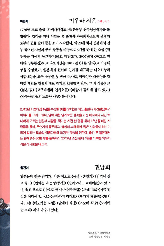 The Great Passage by Shion Miura - Korean Novel (舟を編む, 배를 엮다)