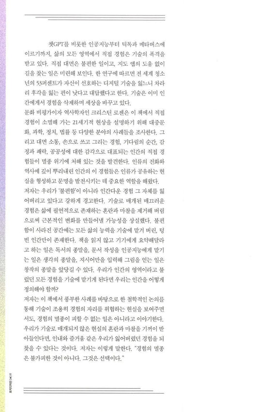 The Extinction of Experience by Christine Rosen, Korean Edition, 경험의 멸종, 크리스틴 로젠