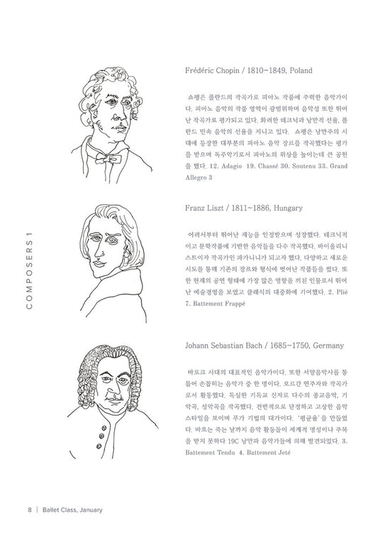 JANUARY Classical Music for Ballet Class - Music Score Book in Korean