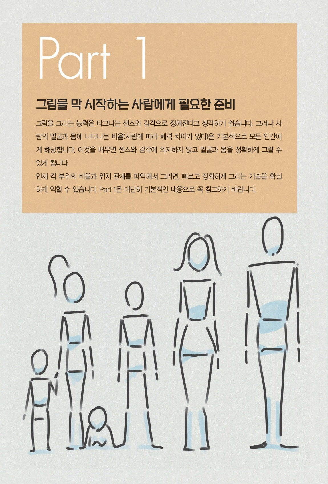 ·단순한 형태로 시작해서 근육과 골격 등의 균형 잡힌 몸을 그리는 방법