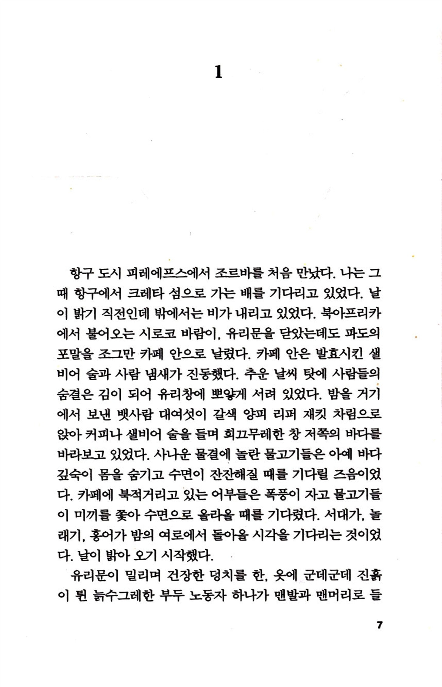이야기는 젊은 지식인 "나"가 크레타 섬으로 가는 배를 기다리다가,