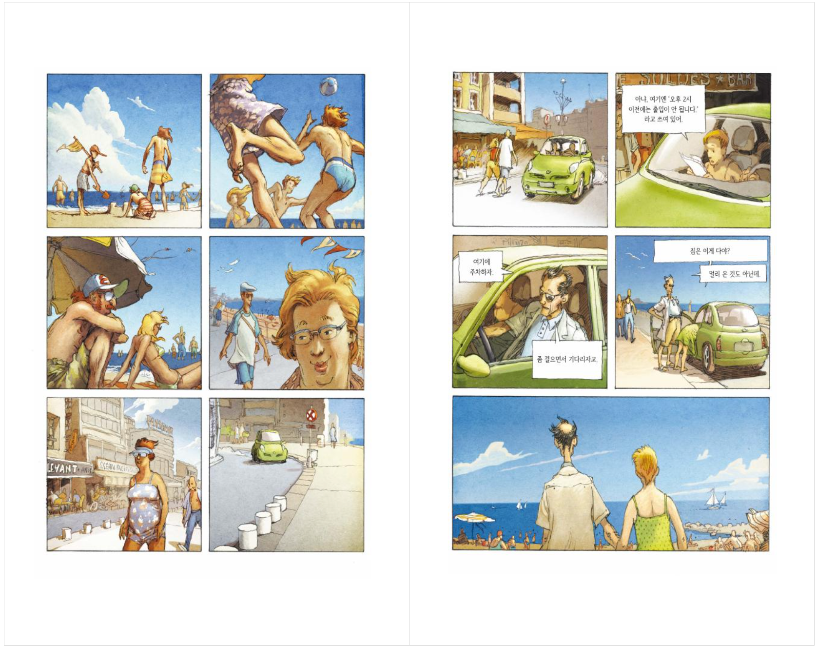 눈부신 여름날 북적이는 분위기의 휴가지를 배경으로 펼쳐지는 잔인한 현실과 거기에 드리운 어두운 그림자는 서로 강렬한 대비를 이루며, 이 그래픽노블을 아주 드물고 특이한 작품으로 만든다. 독자들은 이 낯설고도 불편한 허구의 세계를 마주하며 “우리는 삶에서 마주치는 모든 것을 통해서 성장하죠.”라고 파코가 파비엔느에게 전한 말을 다시금 곱씹게 될 것이다.