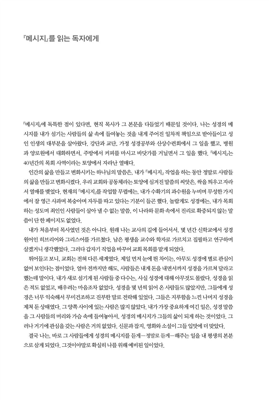- 유진 피터슨의 The Message 원문과 공식 한국어판 수록