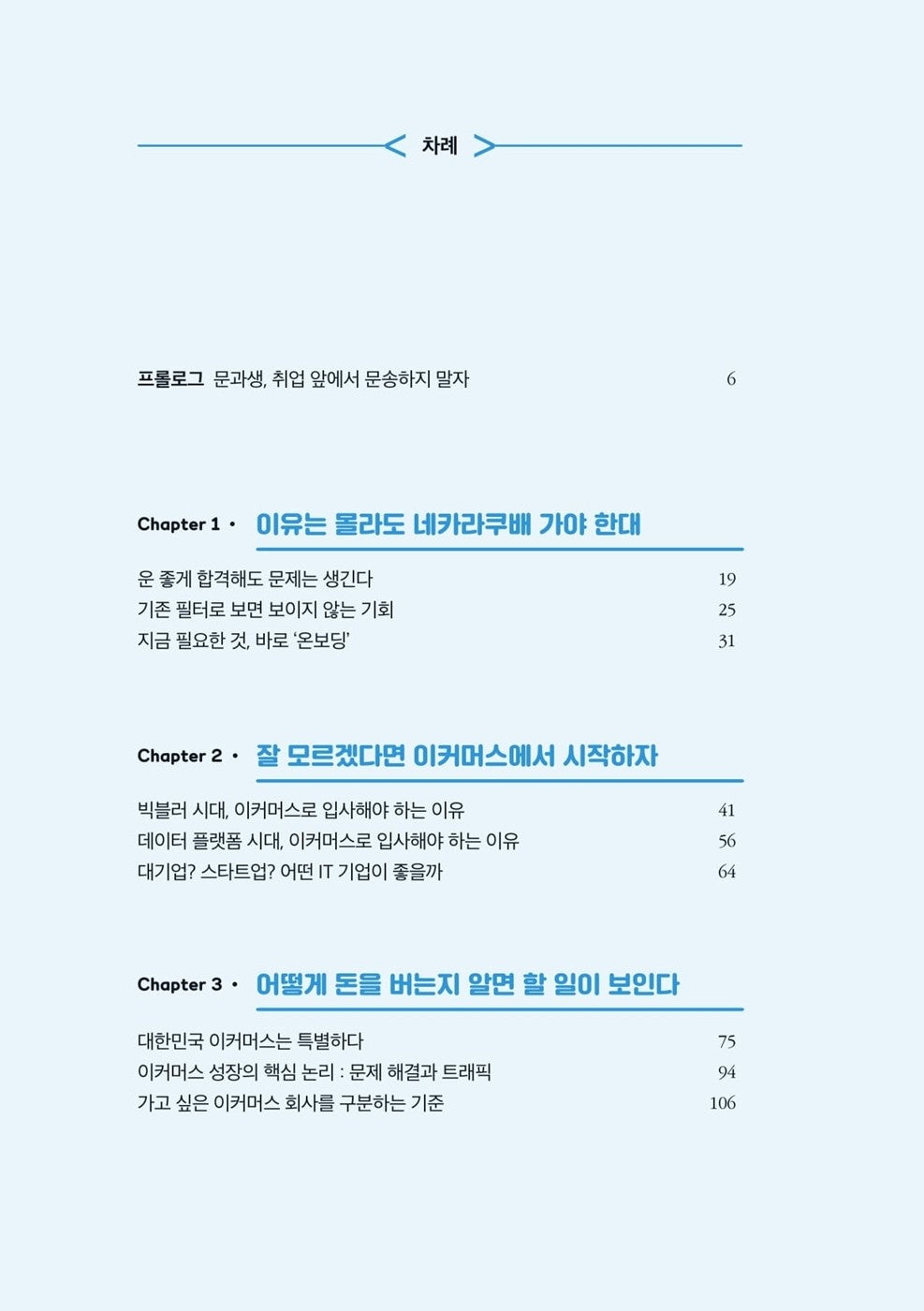 ‘네카라쿠배’는 이러한 상황을 단적으로 보여주는 말이다. 네이버, 카카오, 라인, 쿠팡, 배달의민족의 앞 글자를 따서 만든 말로 MZ세대가 가장 선망하는 기업들을 일컫는다. 최근에는 여기서 당근마켓과 토스를 덧붙여 ‘네카라쿠배당토’라는 단어까지 생겨났다. 국내 대형 IT 기업을 칭하는 신조어가 만들어질 정도로 사람들은 IT 기업에 관심이 많다. 하지만 IT 기업에 취업하길 꿈꾸면서도, 코딩을 다루는 개발자가 아니면 넘볼 수 없는 곳이라 생각하곤 한다. 『코딩 몰라도 됩니다』는 이러한 오해에서 벗어나 문과 출신이 IT 기업에서 어떤 일을 할 수 있는지, 그곳에서 어떻게 문과생만의 경쟁력을 뽐낼 수 있는지 알려주는 책이다. 새로운 IT 세상을 어떻게 살아가야 할지 난감할 때, 친절한 사수처럼 조언을 건네는 이 책이 여러분의 가이드가 되어줄 것이다.