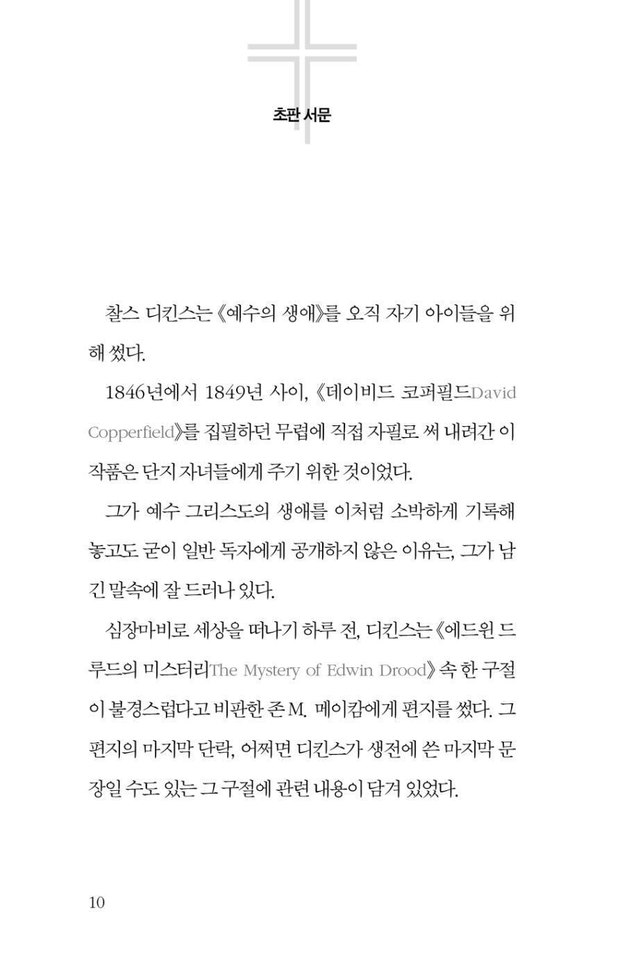 이번 책에는 특히 [킹 오브 킹스] 장성호 감독이 직접 쓴 특별 서문도 실렸다. 장 감독이 인정한 공식 도서인 만큼 이 소설이 시나리오에 어떻게 영감을 주었는지 찾아보는 것도 특별한 재미가 될 것이다. 찰스 디킨스가 《예수의 생애》를 통해 전하고자 했던 예수님의 사랑의 메시지, 끝없는 자비의 마음을 다시 한번 느끼고 배워보자.